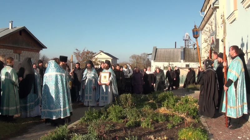 Алтарная часть храма выходит на монастырские теплицы, а западный фасад - на зернохранилище. Рядом с храмом коровник, мельница, братские корпуса; отсюда с молебна о начале работ начинается полевой сезон, а 28 октября, в день иконы Божией Матери «Спорительница хлебов», заканчивается Крестным ходом вокруг храма. К этому времени основной урожай уже собран и престольный праздник храма, установленный в этот октябрьский день по прямому указанию прп. Амвросия, дает возможность братии и паломникам выразить свою благодарность Богу и Его Пречистой матери за их благодеяния, излитые на обитель в прошедший сезон.